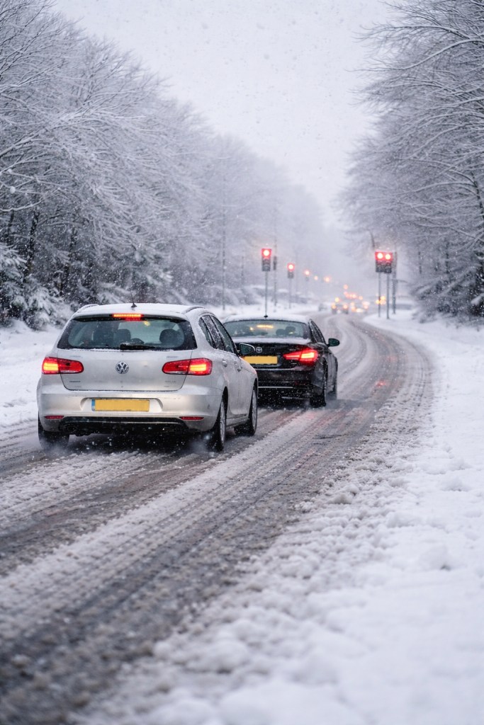 Travelling too close Published January 5, 2026 at 1024 × 1536 in The Do’s and Don’ts of Clearing Frosted Windscreens & Winter Driving